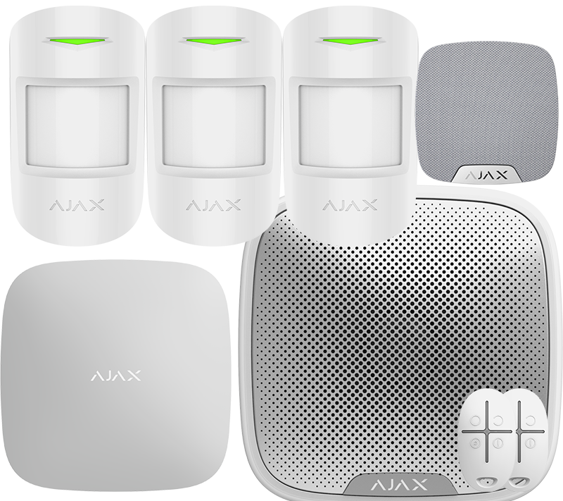 Hub2, HomeSiren, StreetSiren, 2x Remote/SpaceControl, 3x Motion Protect PIR’s