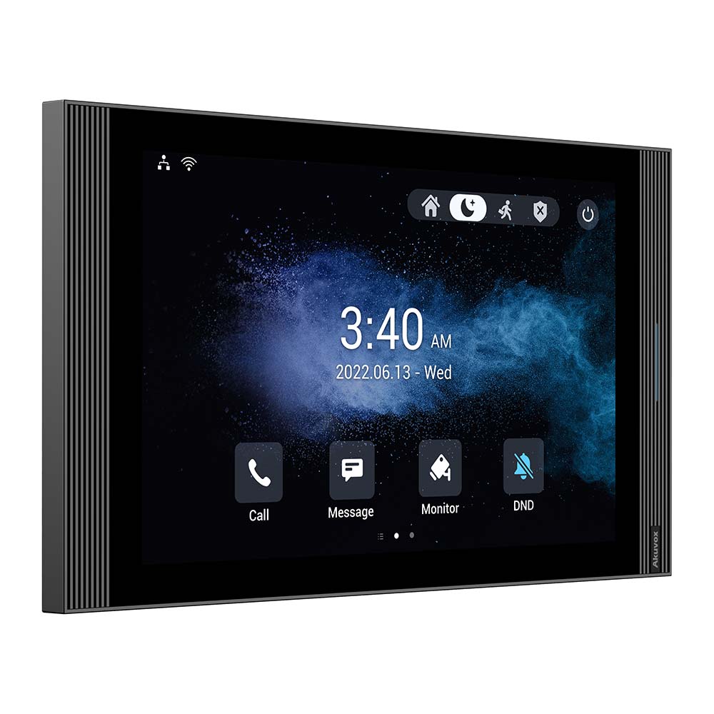 Akuvox S567 10” indoor monitor runs on the industry-leading Android 12 OS, and is equipped with Wi-Fi 6 communication technology. The dual mics and quad speakers together provides superior audio quality. With the minimalist design, S567 blends well into any modern interior design.
