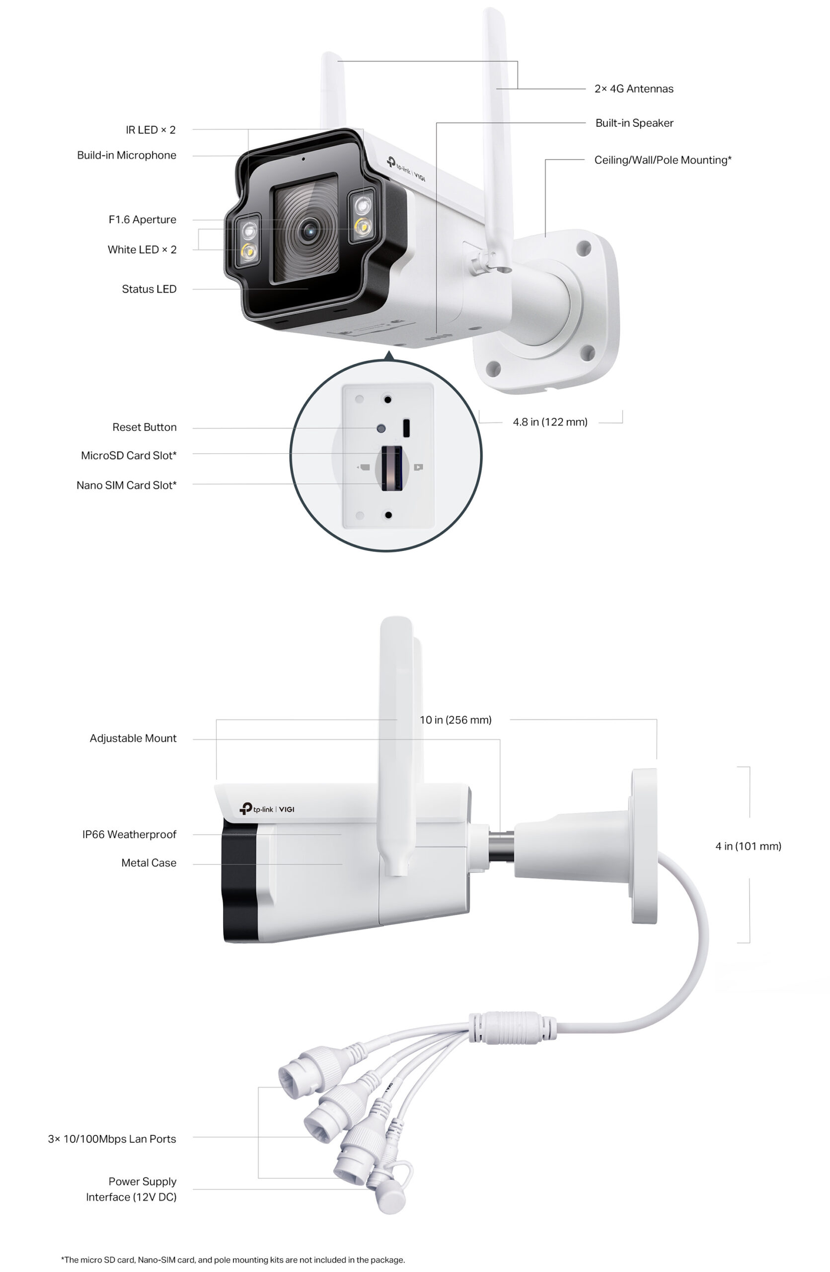 10 × 4.8 × 4.0 in (256 × 122 × 101 mm) (excluding antennas)