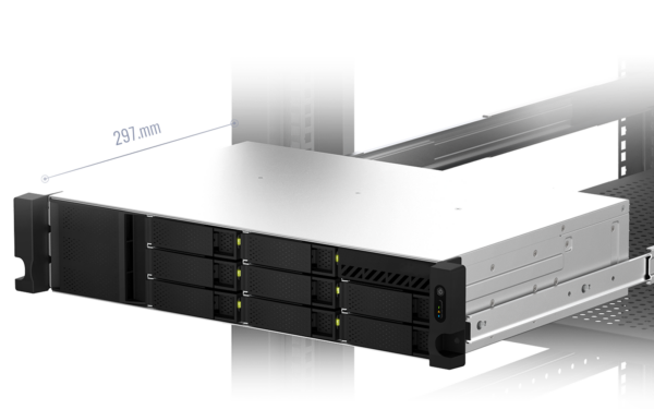 The 2U shallow depth (297mm) chassis will fit in most data cabinets, the unit is sleek in design and easy to install with front mounted brackets.
